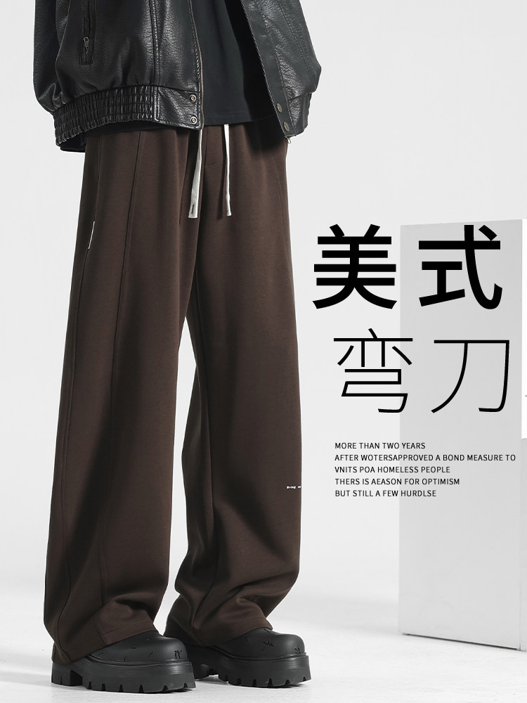 Loose Scimitar Pants for Men, Autumn and Winter Men's Pants, Fleece-Lined Casual Pants, Wide-Leg Pants, Sweatpants, Winter Straight-Leg Long Pants, Men's Trousers