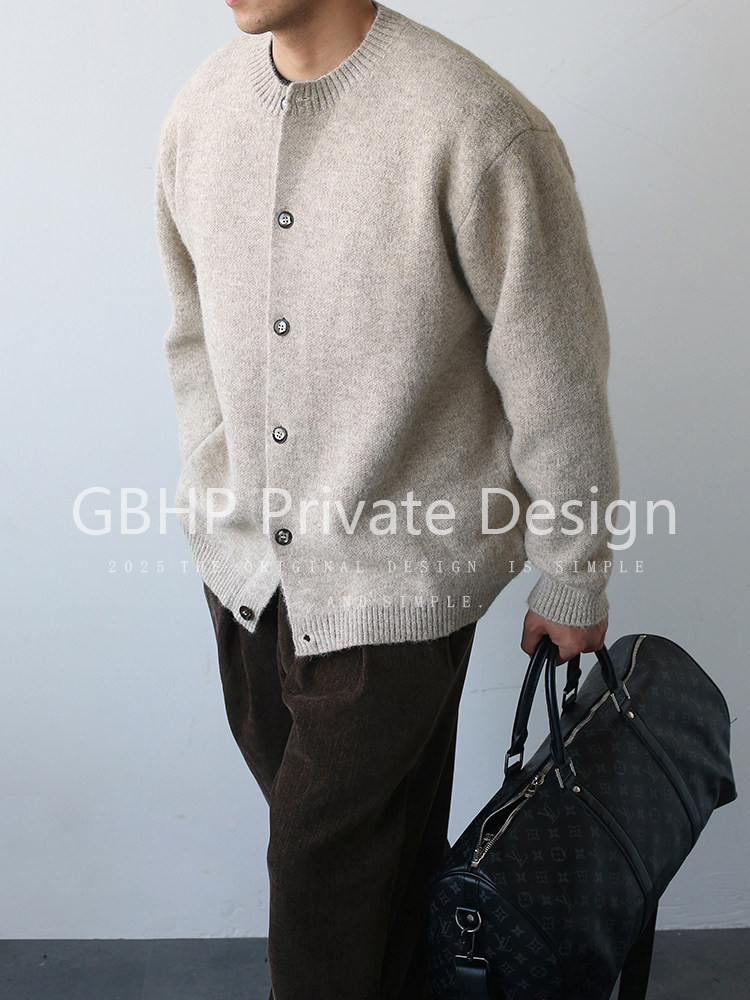 Gbhp Old Money Style Round Neck Buttoned Wool Coat Men's Casual Warm Cardigan Sweater Autumn and Winter Knitwear
