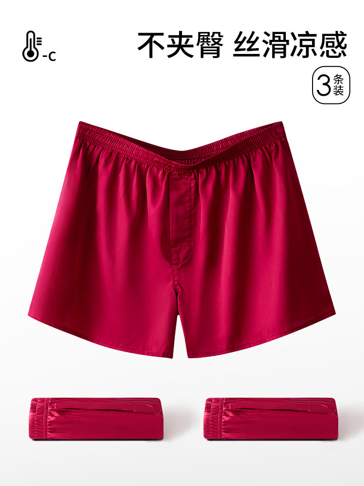 New Year Men's Silk Underwear with a High-End Feel, Year of the Dragon, Zodiac Year, Wedding, Burgundy, Festive, Comfortable, Loose-Fitting Boxer Briefs