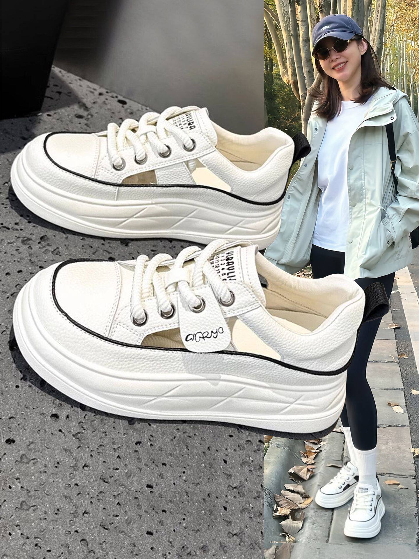 Hong Kong Hollow Breathable White Sneakers for Women 2026 Spring New Genuine Leather Thick-Soled Lightweight Casual Closed-Toe Sports Sandals