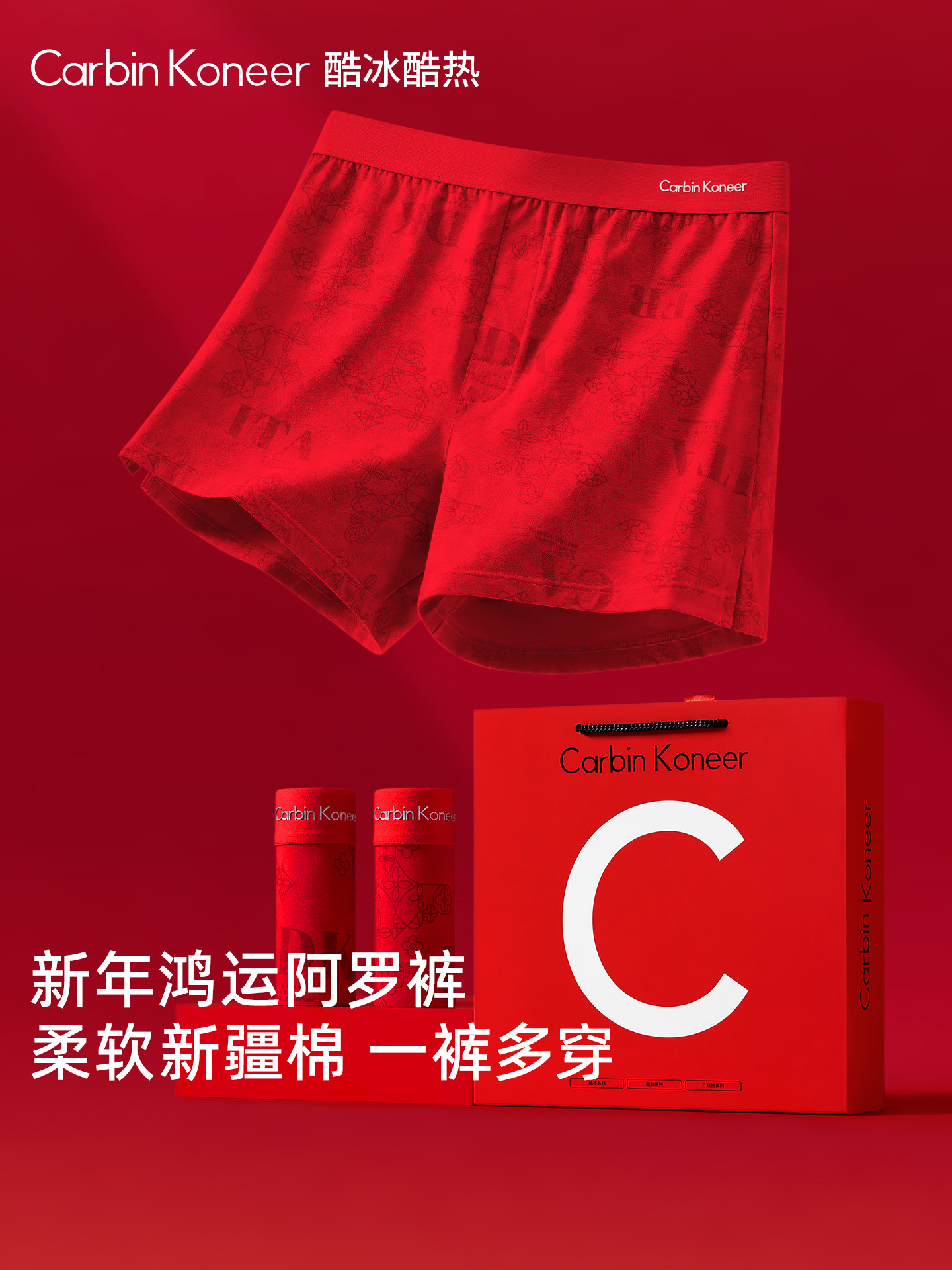 Carbinkoneer Men's Underwear for the Year of the Zodiac, Men's Pure Cotton Loose-Fitting Red Boxer Shorts for Home Use