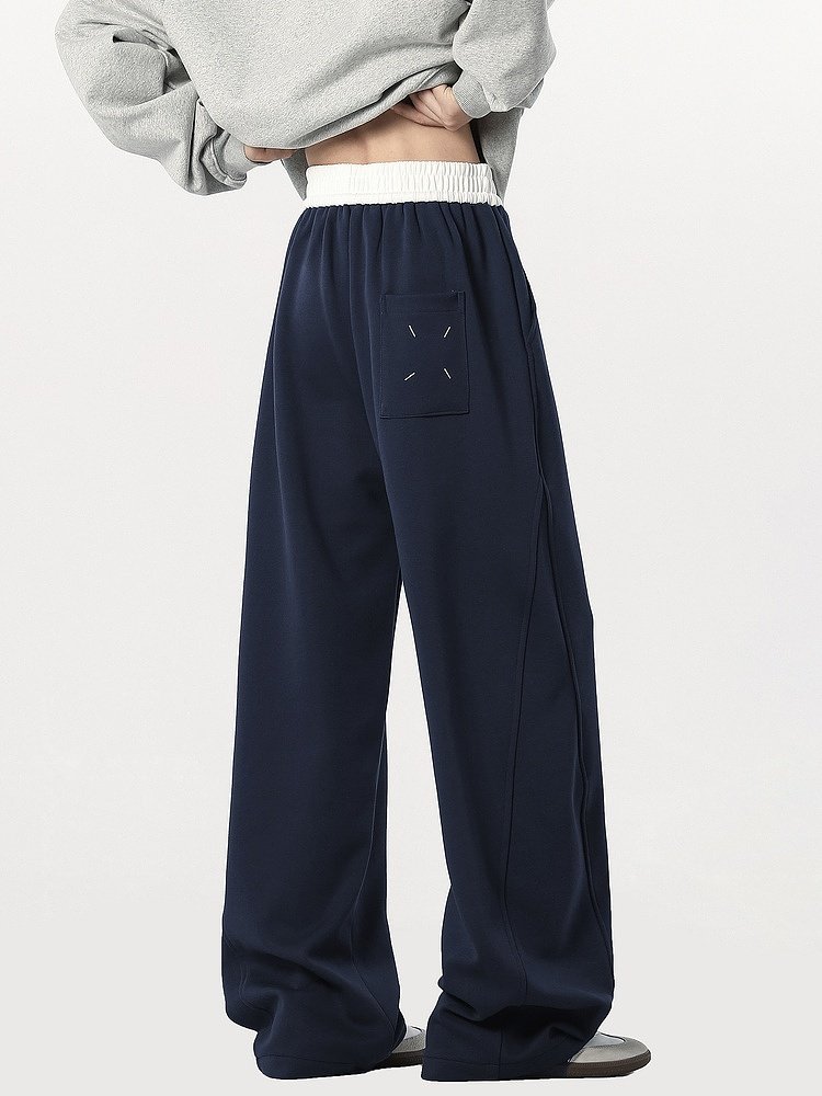 Wukong Has in Stock Trendy Brand Color-Blocking Design Draped Scimitar Sweatpants for Men and Women, American-Style Loose Casual Wide-Leg Sports Pants
