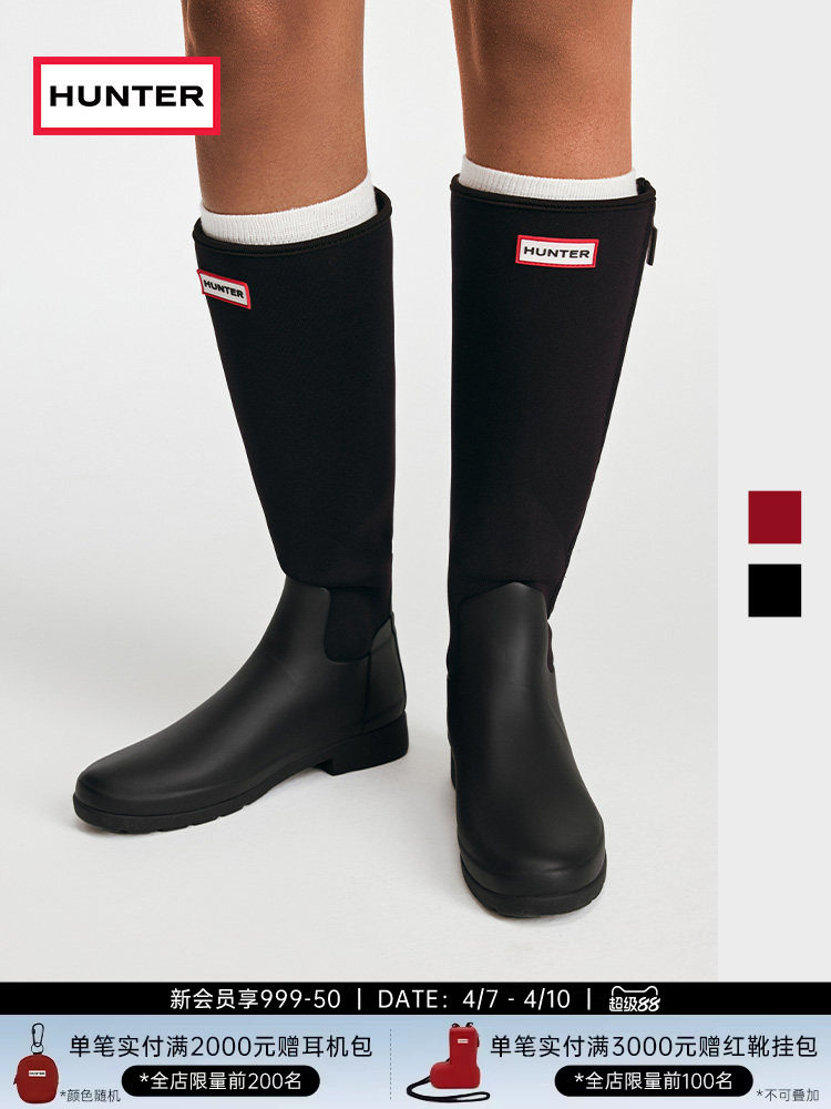 Hunter Women's Rain Boots Outdoor Shoes Refined High Boots Zipper Splicing Long Boots Women's Boots Rain Boots