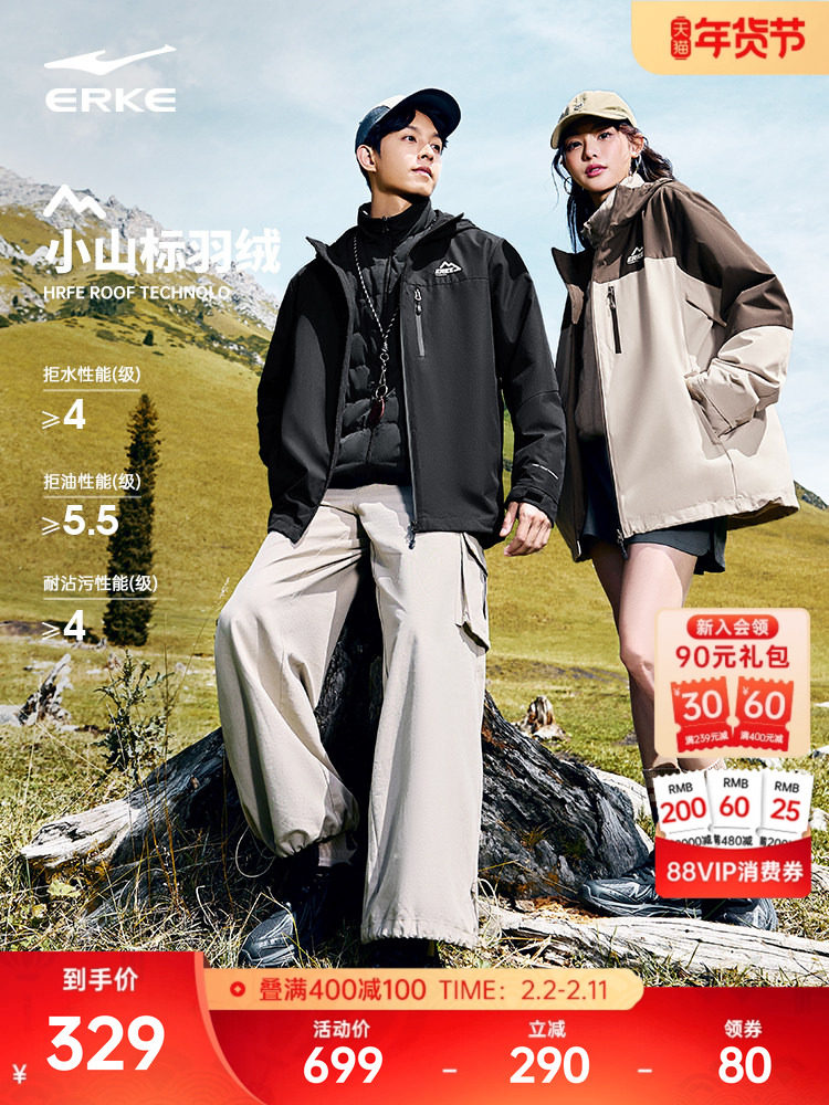 Hongxing Erke Three-Proof down Jacket, New Winter Model for Men and Women, Outdoor Three-In-One Assault down Jacket Top