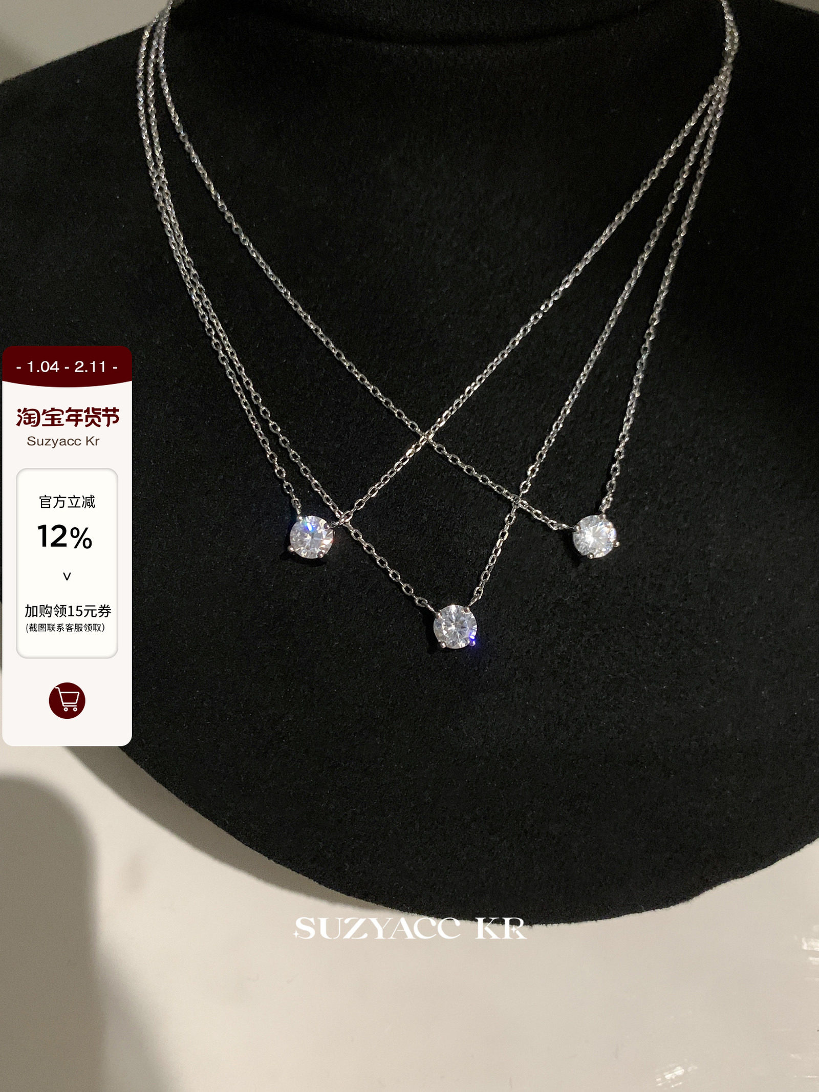 Suzyacc Kr Zhao Lusi Same Style Necklace 999 Pure Silver Loose Diamond Clavicle Chain Simple High-End Elegant Neck Chain