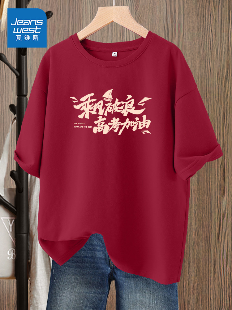 Jeanswest Red Short-Sleeve T-Shirt for Women, Summer 2025 New Model, Zodiac Year Clothing, High School Entrance Exam Outfit, Class Uniform Top