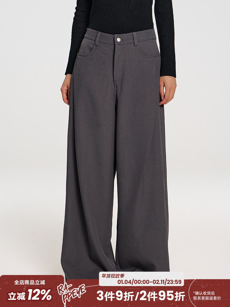 Rappeye Pleated Dress Pants with a Draping Effect, High-End Feel, Loose Fit for Petite Women, Versatile High-Waisted Wide-Leg Suit Pants for Women