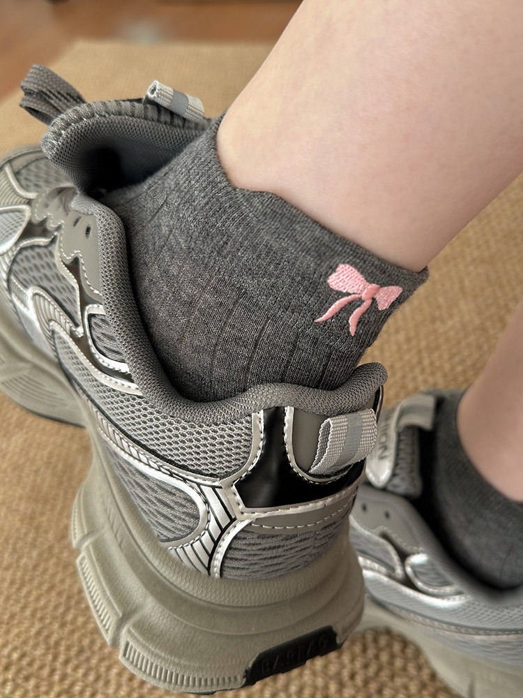 Nut Mommy Embroidered Bow Socks for Women, Mid-Calf, Thin Summer Style, Suitable for Wearing with Small Leather Shoes, White Japanese Style Heel Socks