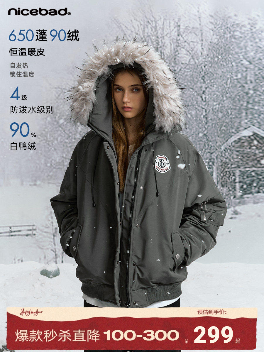 [Same Style as Huang Zihongfan] Nicebad Detachable Fur Collar Hooded Parka Cotton Jacket Trendy Warm down Jacket