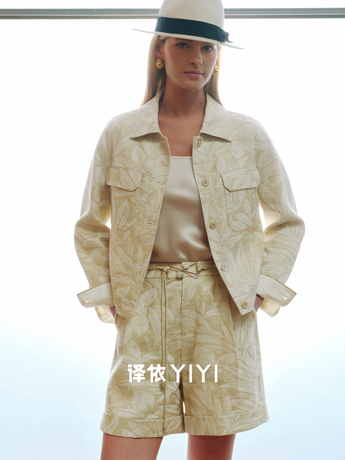 Yiyi Sicilian Sunset Old Money Vacation Style Glitter Linen Jacquard Jacket & Shorts & Skirt