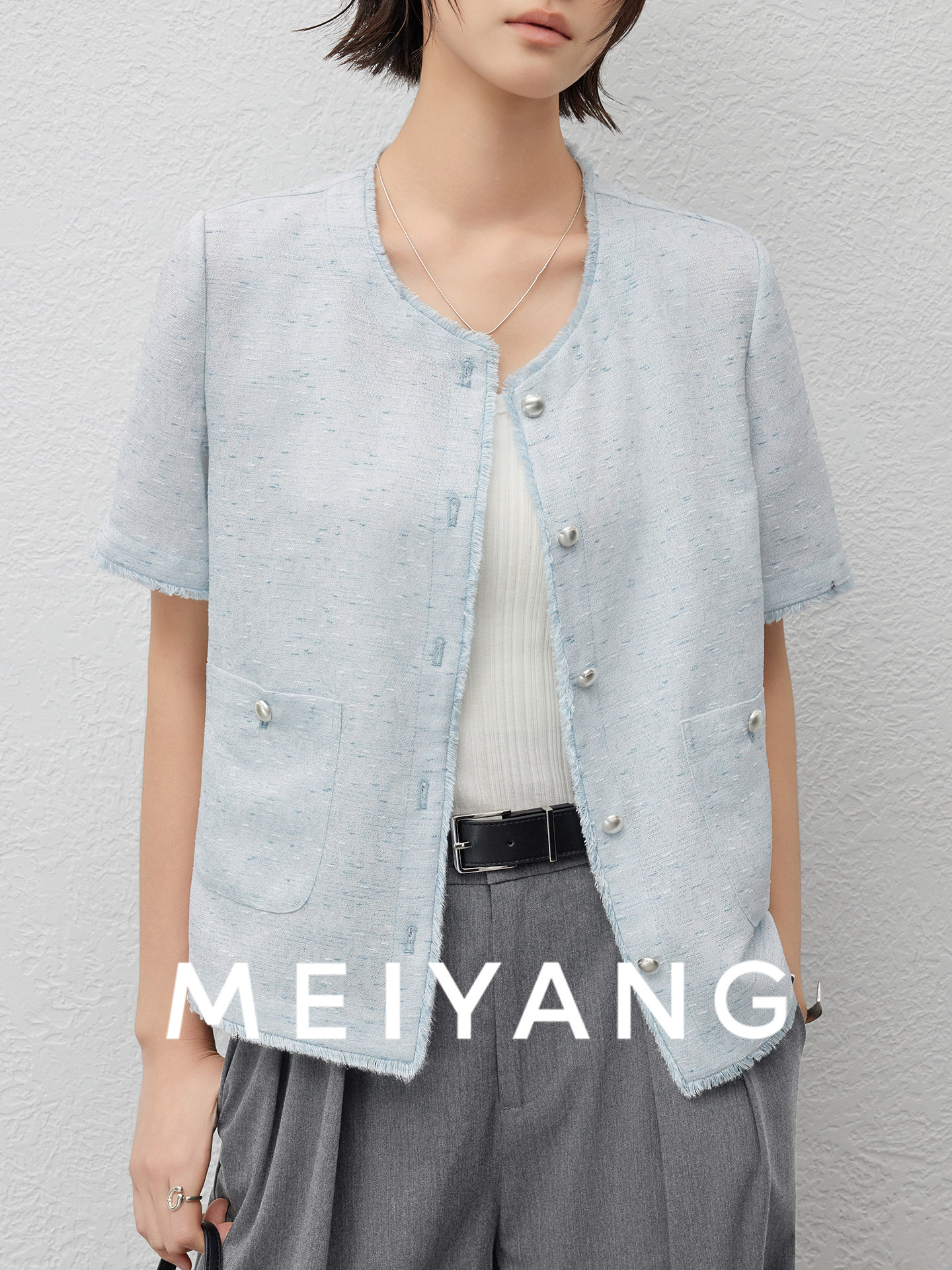 Meiyang【In Stock】Ultra-Thin Chanel-Style Jacket with Dotted Texture, Round Neck Short-Sleeve Top - Monday
