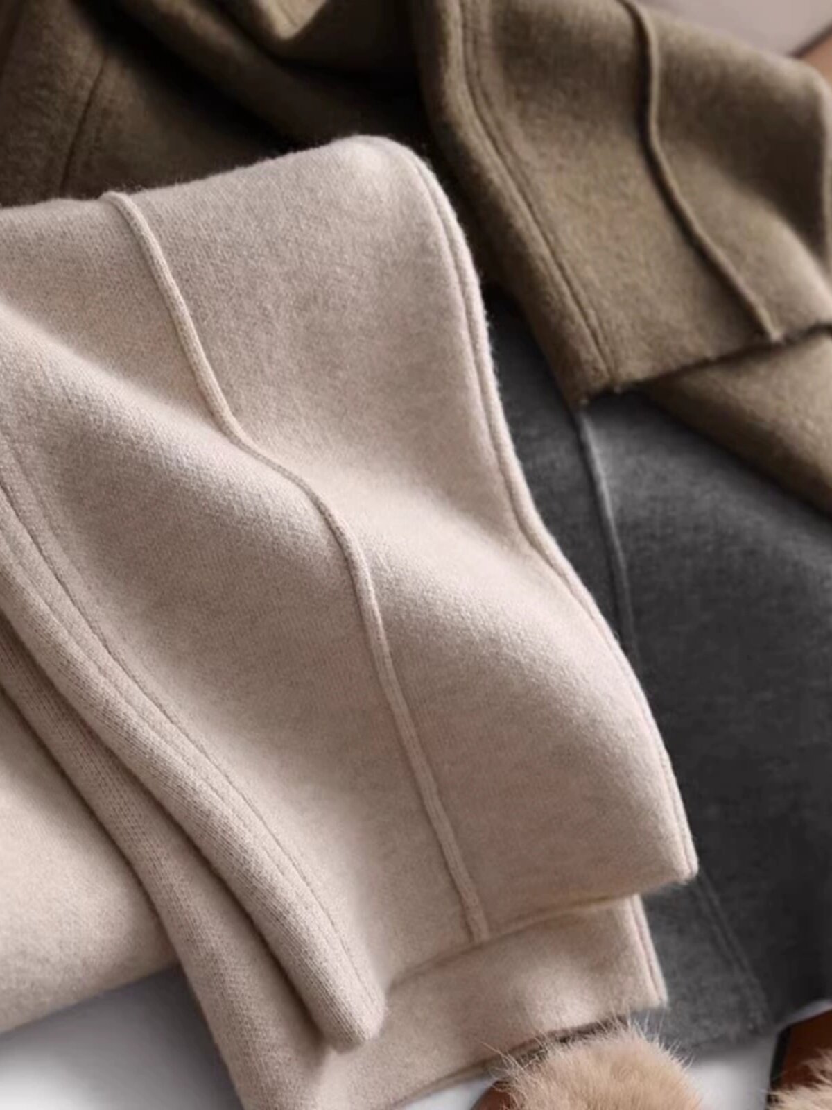 Unvesno (Un) Two-Way Wear Double-Row Adjustable Buckle Slim Fit Fleece Lazy Long-Sleeve Knit Sweater