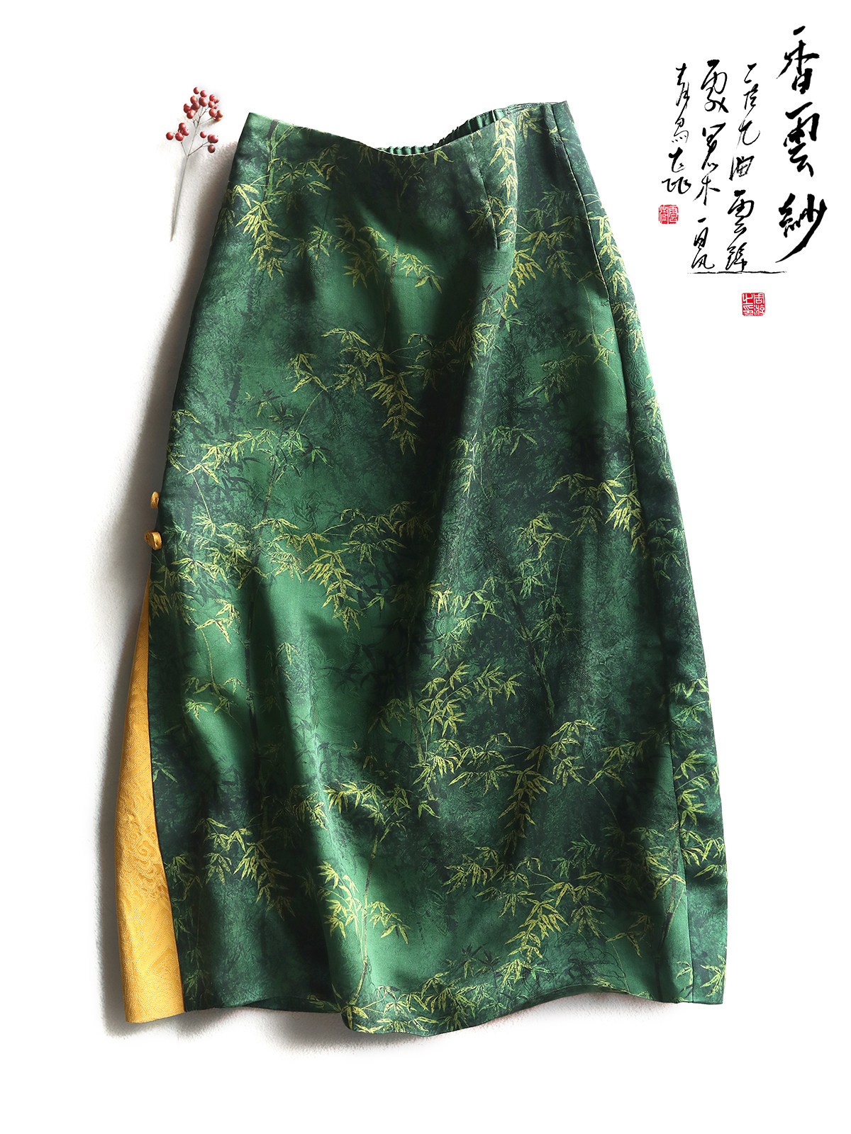 Yunshu Original Floral Fragrant Cloud Yarn New Chinese Style Improved Midi Skirt Summer National Style A-Line Commuting Pencil Skirt