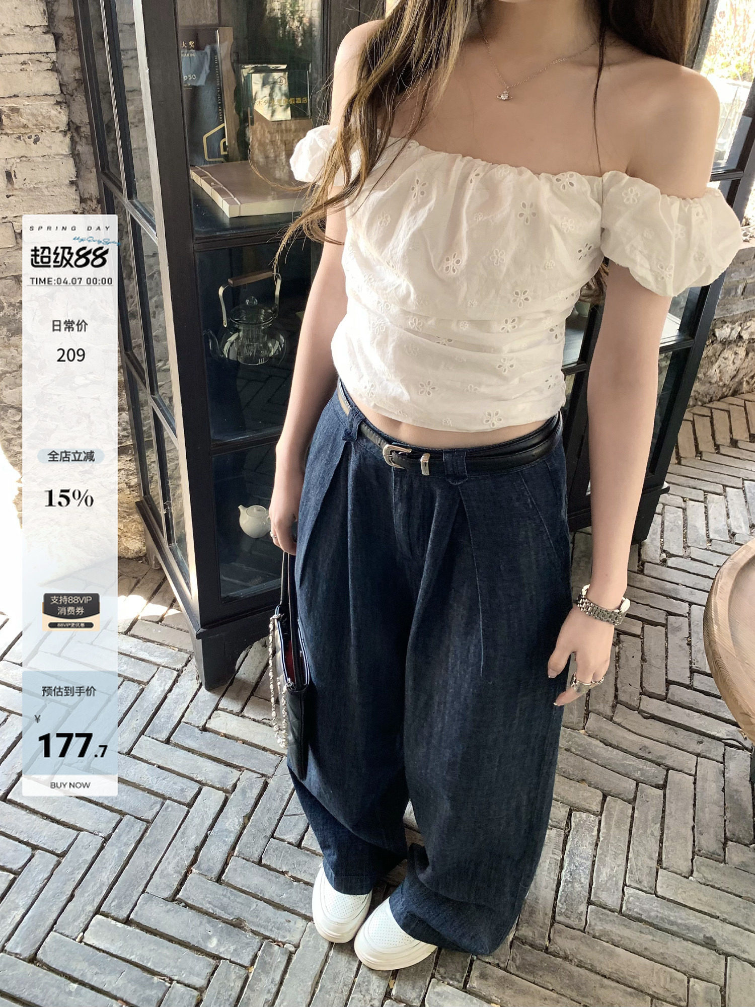 Hhyii Texture-Focused Vintage Thin Pleated Jeans for Women, Summer High-Waisted Versatile Straight-Leg Casual Pants