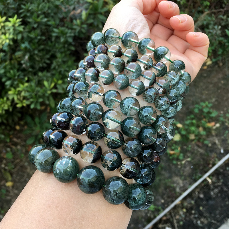 Natural Brazilian Green Ghost Cornucopia Crystal Crystal Clean Couple Bracelet with Red Leather