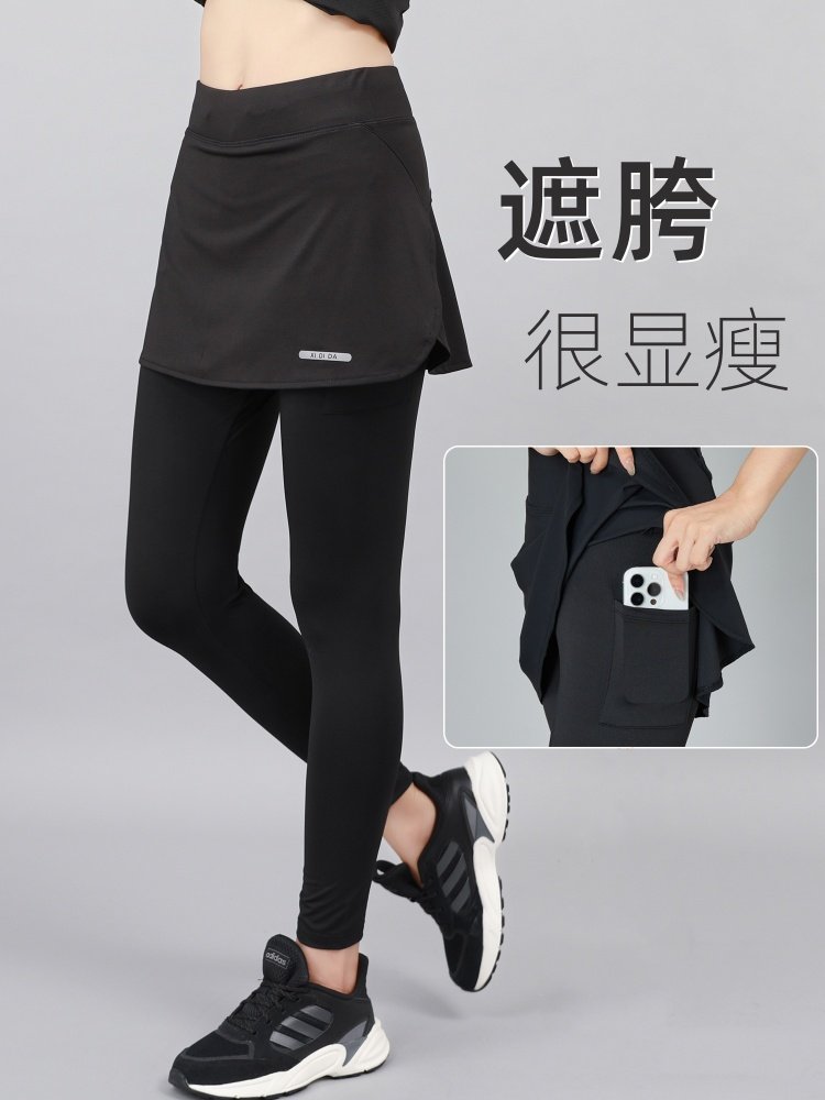 Women's Sports Pants with a Skirt Overlay, Suitable for Tennis and Badminton, Hip-Covering, Fleece-Lined for Autumn and Winter, Quick-Drying for Fitness, Yoga, and Running