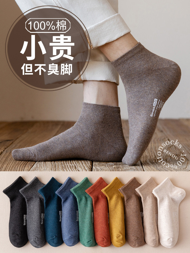 Men's Pure Cotton Short Socks for Autumn and Winter, Breathable, Sweat-Absorbent, Odor-Resistant, 7A Antibacterial, Anti-Foot Odor, Winter Short Tube Seamless Socks