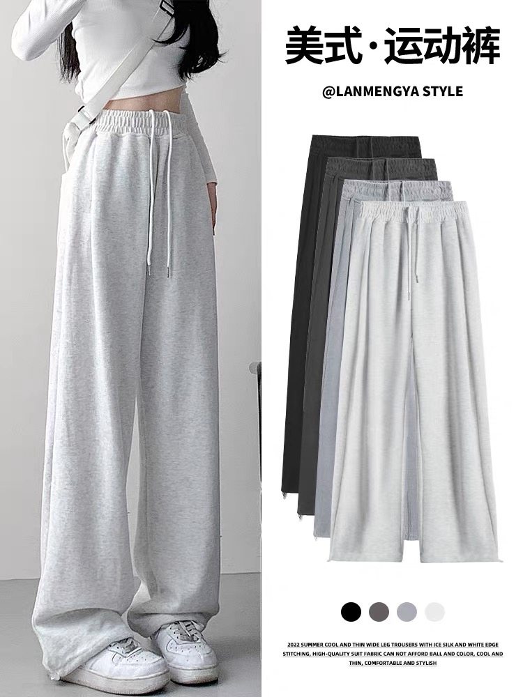 Gray Sweatpants for Petite Women, 2025 Autumn and Winter, Elastic Waist, High-Waisted, Drapey Wide-Leg Pants, Jogger Pants