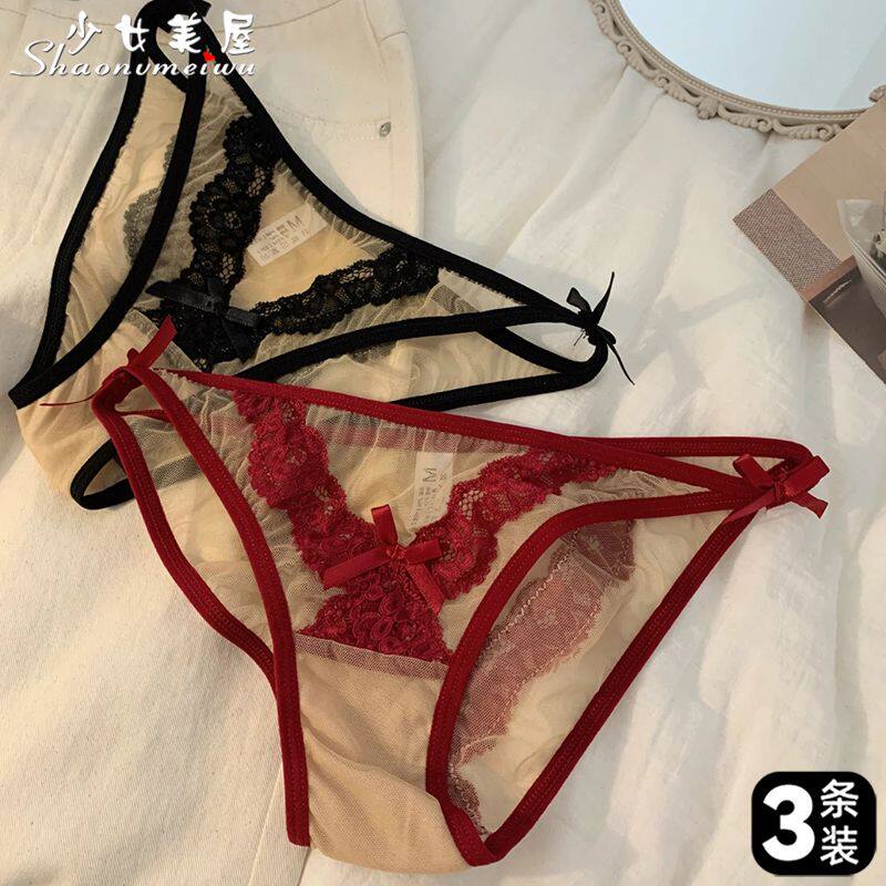 Sexy Transparent Temptation Pure Lust Style Lace Panties for Women Low Waist Thin Breathable High Slit Personalized Briefs