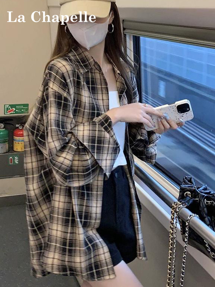 La Chapelle Plaid Long-Sleeve Shirt for Women, Spring and Autumn 2026 New Thin Korean-Style Loose Jacket Cardigan Top