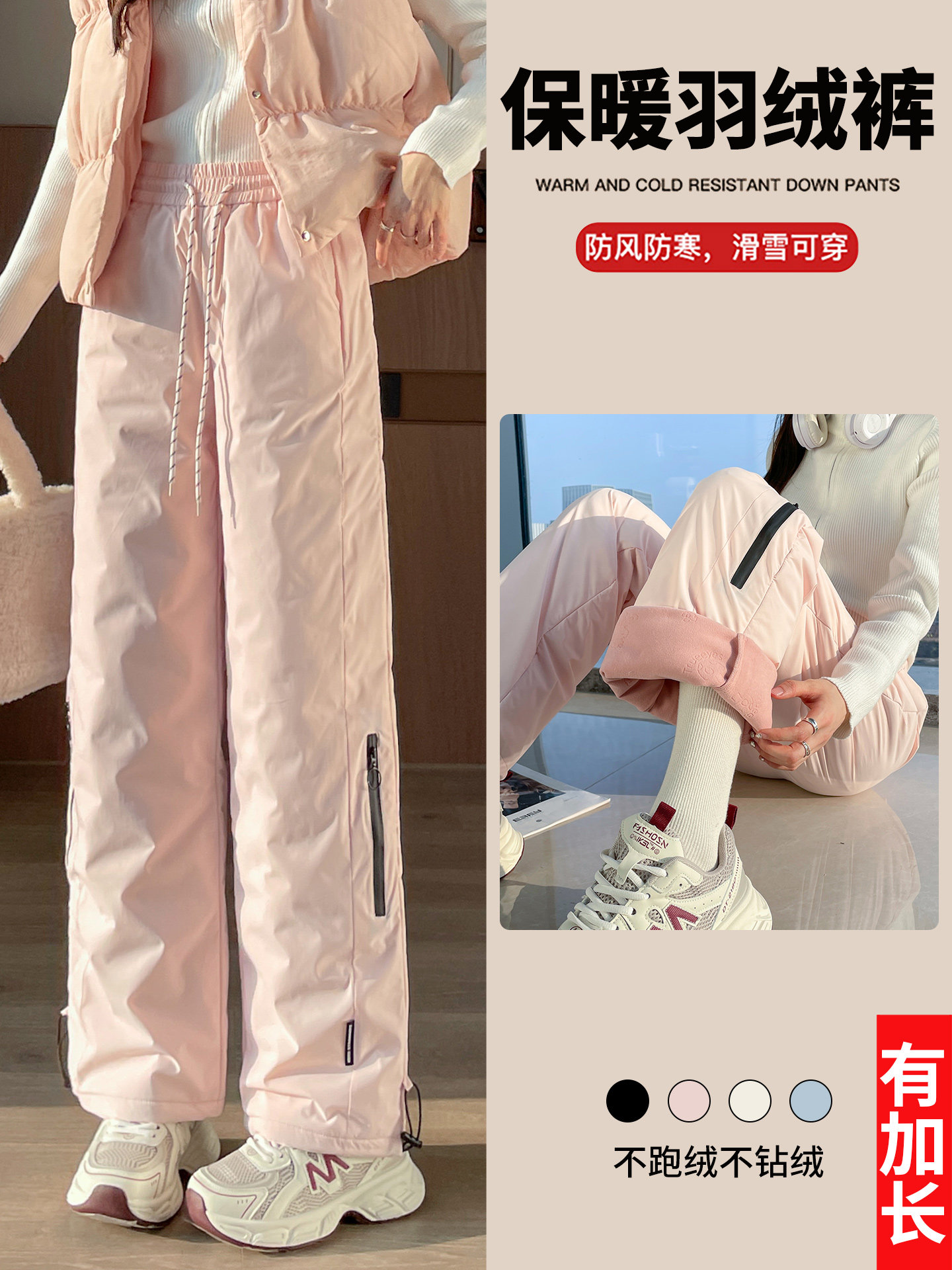 Extended Wide-Leg Workwear down Pants for Women, Winter Outdoor Wear, White Duck Down, Cold-Proof and Warm, Suitable for Tall Individuals, Harbin Thick Cotton Pants
