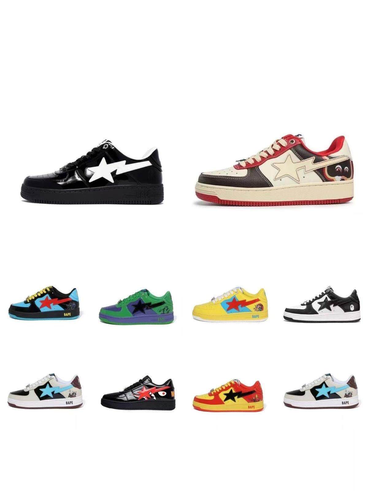 Bapesta X Marvel Co-Branded Patent Leather Men's and Women's Sneakers Vibe Trendy Low-Top Casual Skate Shoes