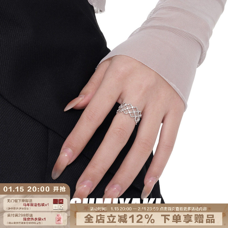 Sumiyaki Original Hollow Diamond-Shaped Zircon Ring, Light Luxury Niche Fashion Plain Ring, Couple Open Ring Gift