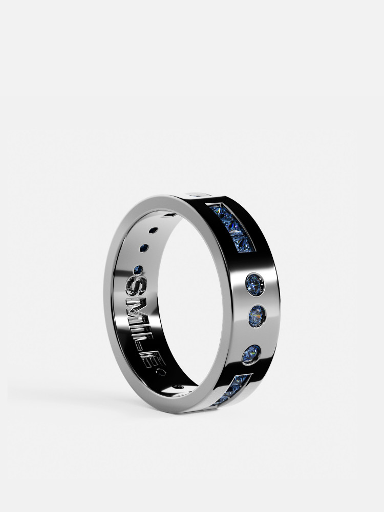 Apm Monaco Smile Morse Code Ring Unique Navy Blue Couple's Gift for New Year and Valentine's Day