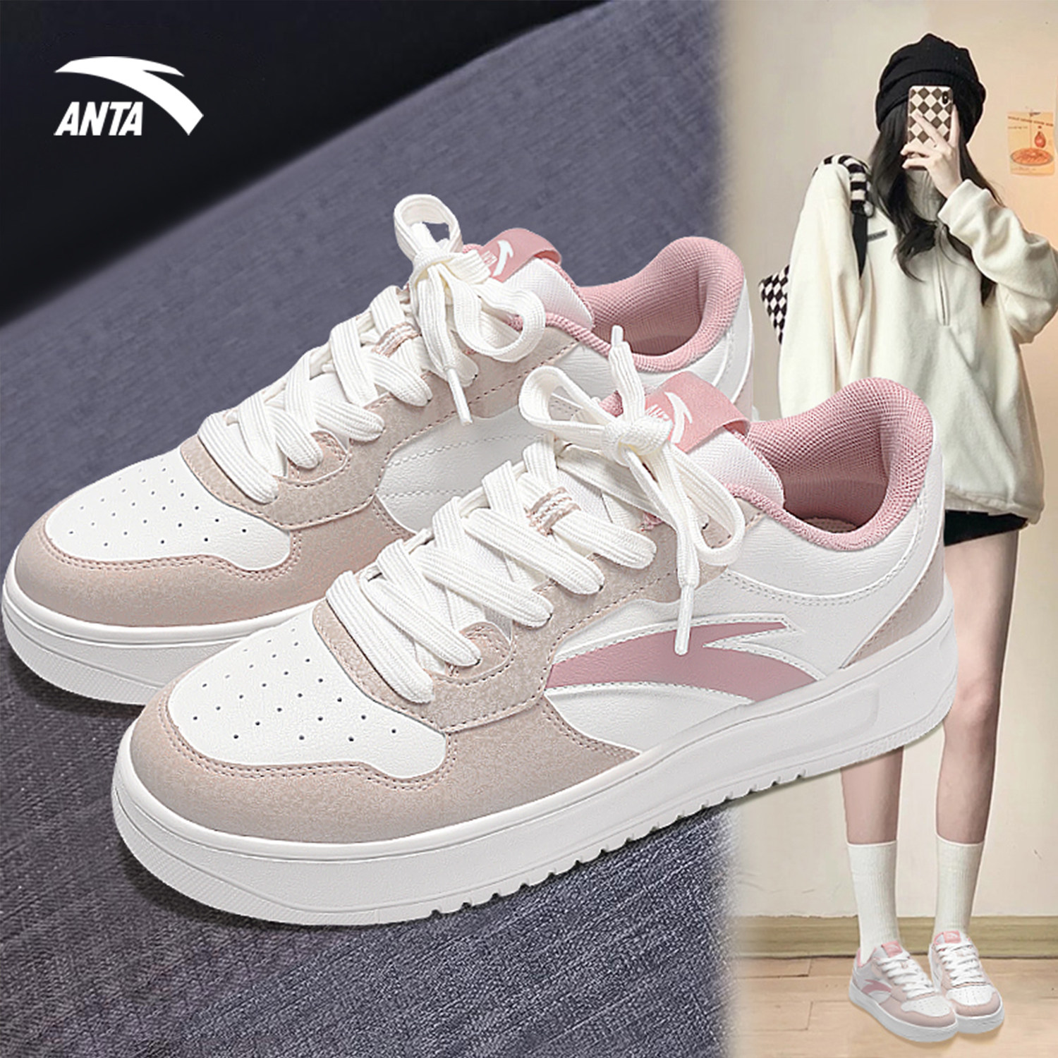 Anta Casual Sneakers for Women 2025 Winter New White Shoes Soft Sole Official Authentic Low-Top Casual Shoes