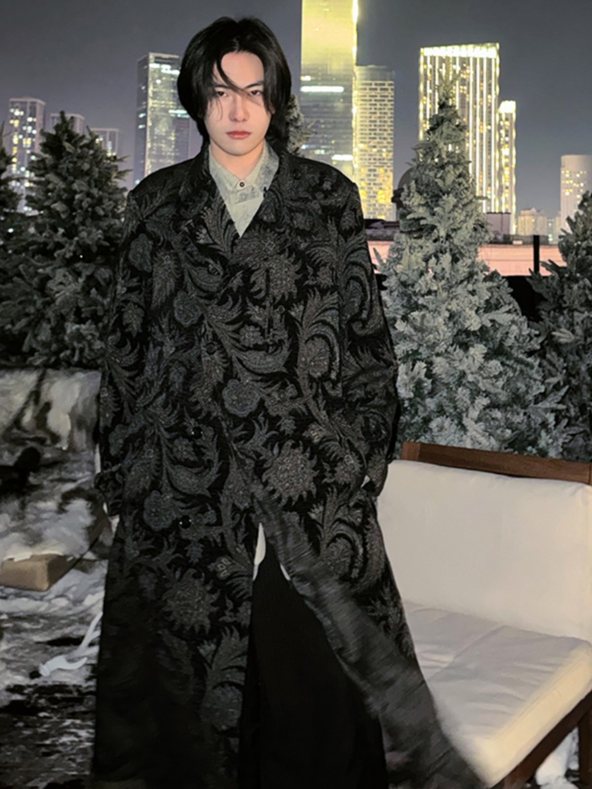 -Evanxx Original Mountain Dark Style Central Asian Traveler Tiger Pattern Carpet Color Woven Autumn and Winter Wool Coat