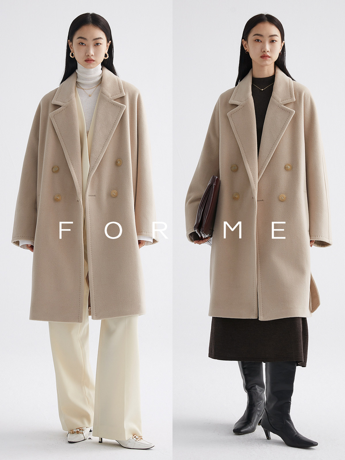 M Brand Baiocco Classic Double-Breasted Silhouette Short Coat for Petite Women 101801 Cashmere Coat Women's Winter Outerwear