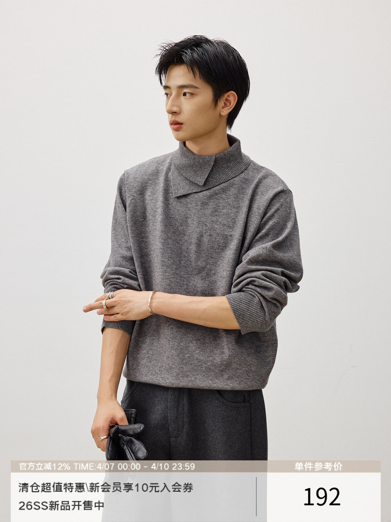 Lr Made Irregular Double-Layer Collar Warm Wool Long-Sleeve Base Layer Turtleneck Sweater Knitwear