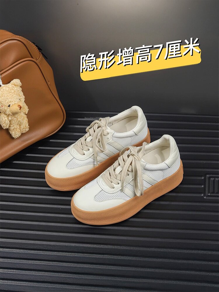 Hong Kong Genuine Leather Round-Toe Thick-Soled Breathable Sports Casual Shoes for Women 2026 Spring/Summer New Versatile German Training Shoes for Petite Individuals