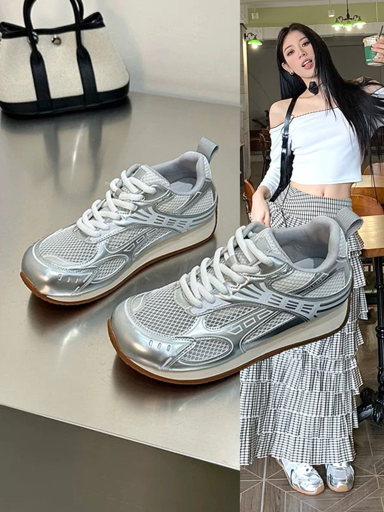 Hong Kong Mesh Breathable Thick-Soled Height-Increasing German Training Shoes for Women 2026 Spring and Autumn New Casual Sneakers for Petite Individuals
