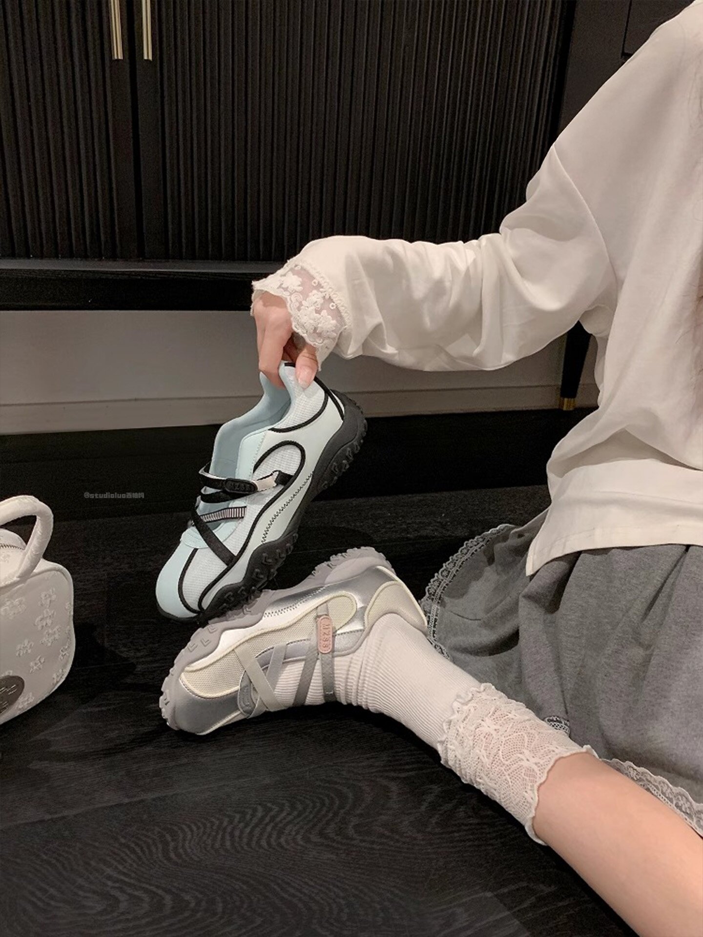 Hong Kong Thick-Soled Round-Toe Cross-Strap Sneakers for Women 2026 Spring and Summer New Casual Mary Jane Shoes Ballet-Style Sandals