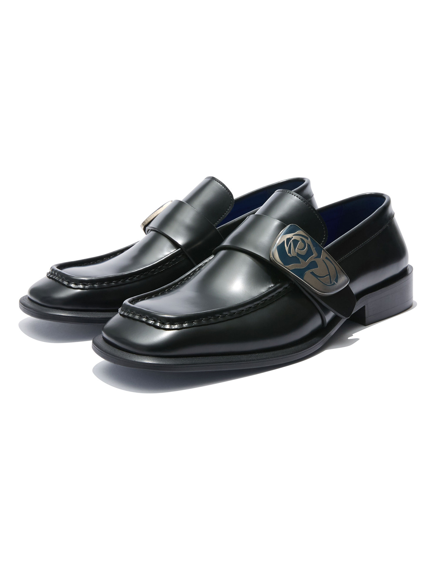 Taichiism "Rose Loafer” Rose-Engraved Contrasting Blue Genuine Leather Old Money Elegant Low-Top Leather Shoes