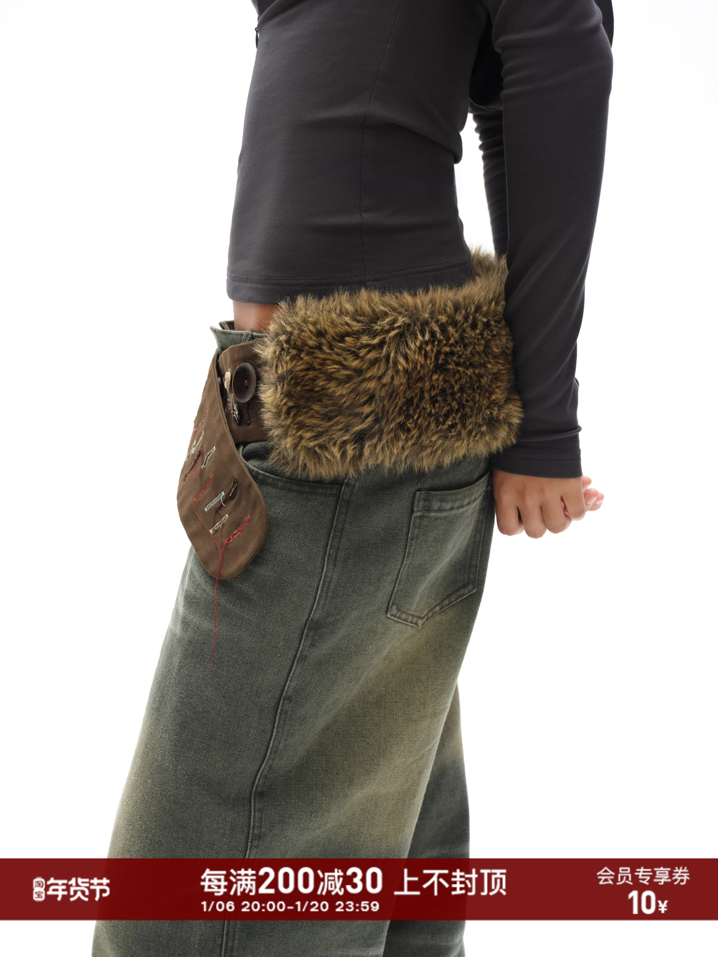 Oinimi Dopamine Buttonhole Fun Fur Belt Girdle Multi-Purpose Scarf Girdle Layering Matching Style