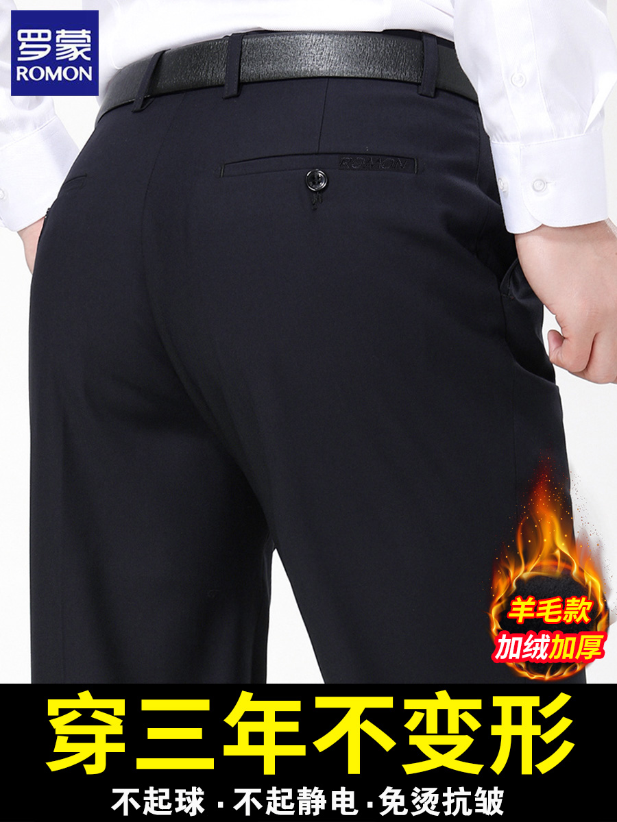 Romon Wool Fleece-lined Trousers Winter Middle-Aged Men Dad Anti-Wrinkle No-Iron Loose Business Formal Wear thickened Trousers
