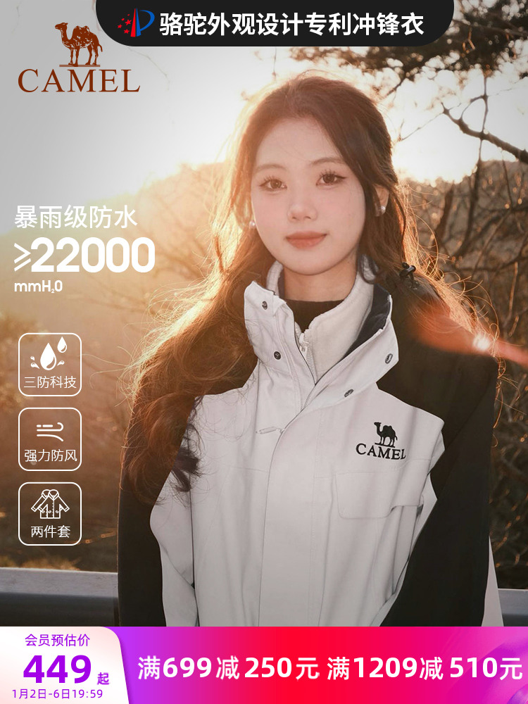 Camel Storm Jacket Women's Three-In-One parka Outdoor Down jacket Heavy Rain Waterproof Outwear Winter Plus Velvet Mountaineering Jacket