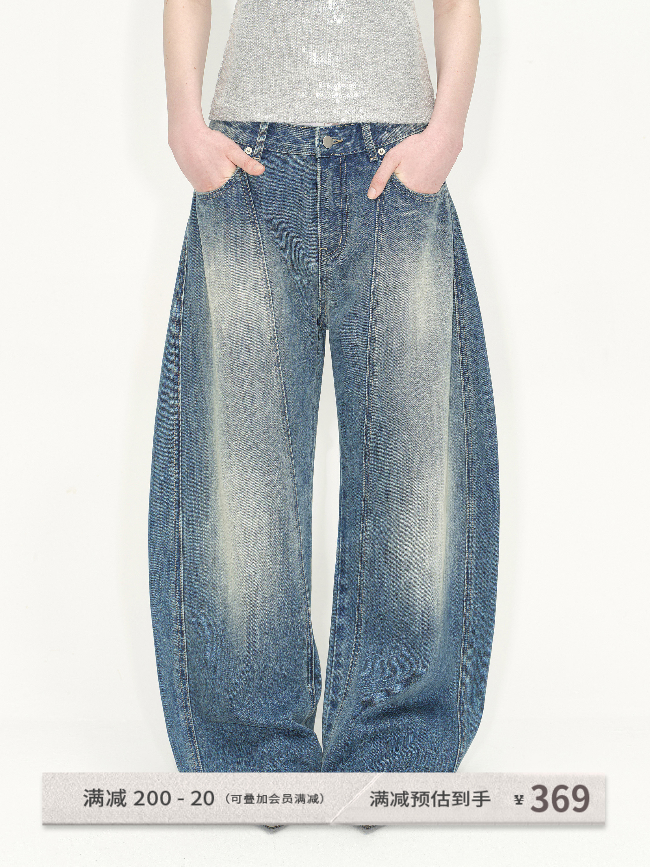 Escape Chigang West Retro Washed Lightning Pattern Deconstruct Scimitar Denim Three-Dimensional Cut Silhouette Banana Pants