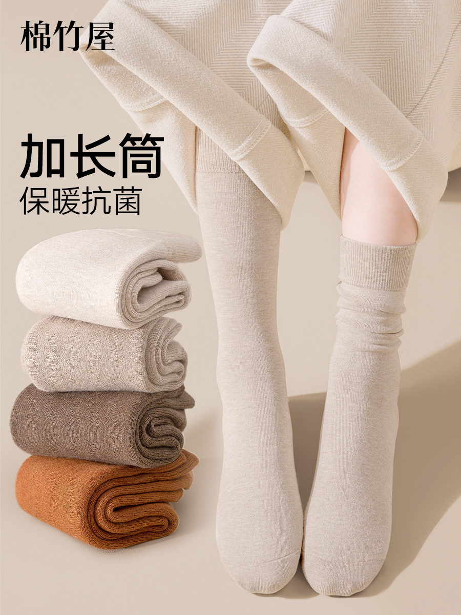 Socks Women's Stockings Autumn and Winter Thick Heattech Knee Socks Socks pure cotton Antibacterial Deodorizing Filter Boneless Confinement Black Women's Long Stockings