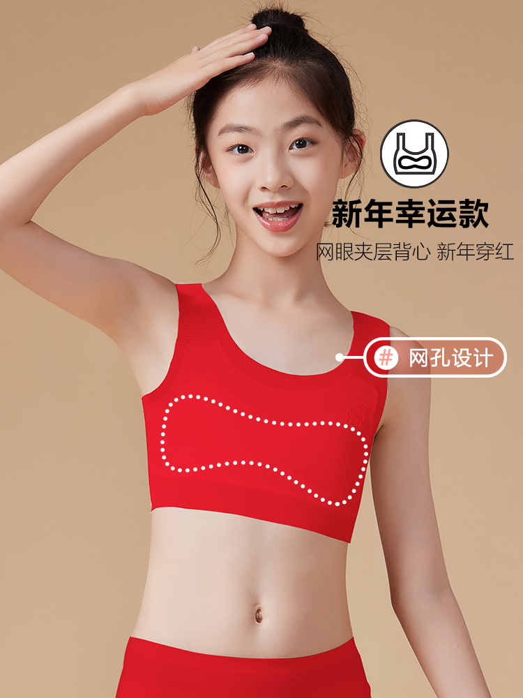 girl Primary School Students' Developmental Period Red Vest Intimates Underwear Suit Girls' Birth Year Stage Young Adult Bra