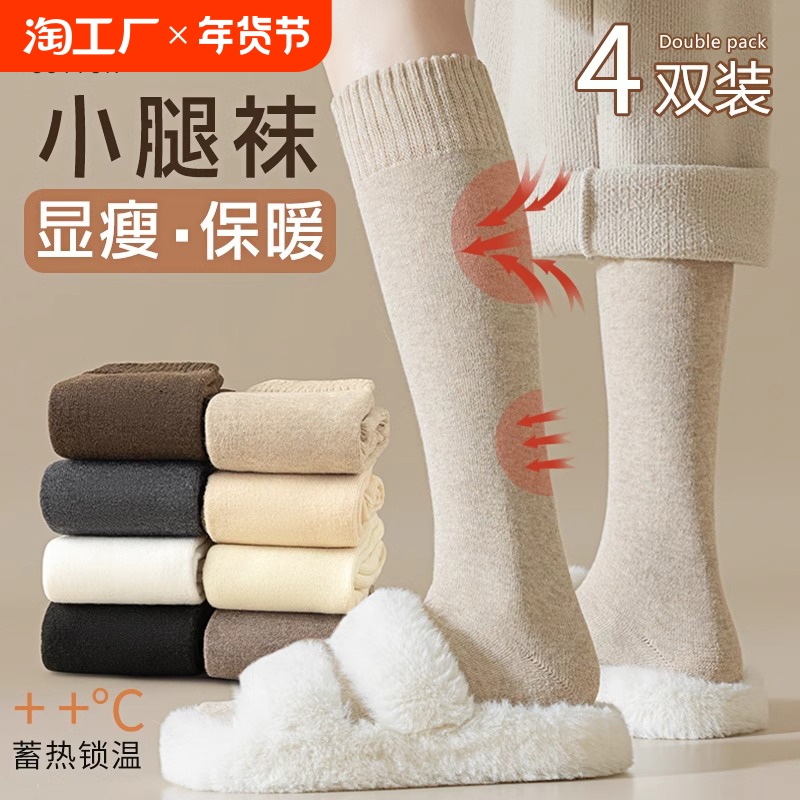 Zhuji Socks Women's Fall and winter Calf Socks thickened Terry Socks Heattech Maillard Style Slimming pure cotton Long Socks Knee High