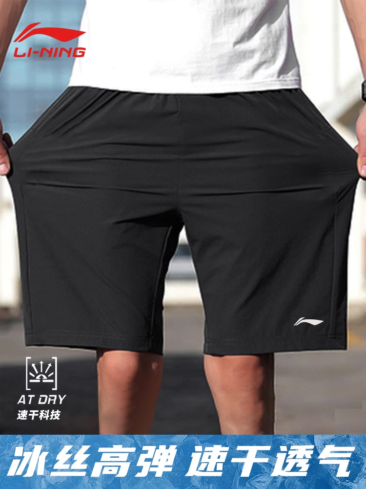 Li Ning Sports shorts Men's Summer Running Fitness Track and Field Basketball Training Quick-Drying Badminton Ice Silk Quarter Pants Women