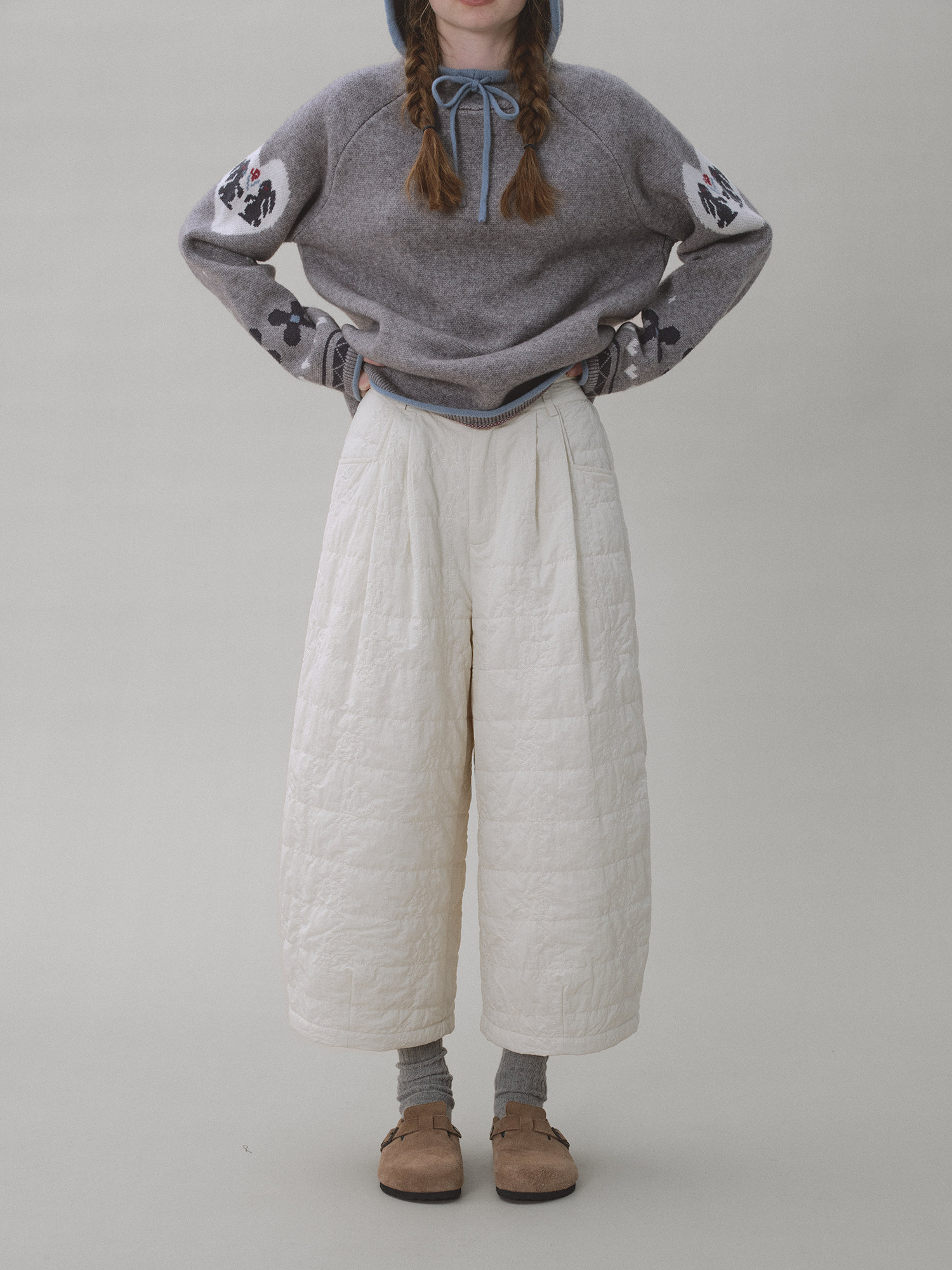 Odd Maker Original Checkered Embroidered Quilted Cotton Pants for Women, Autumn and Winter High-Waisted Slimming Loose Versatile Straight-Leg Pants