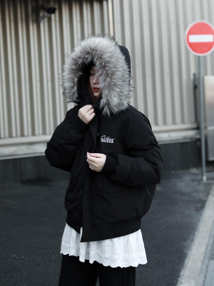 Srikerlab American Retro Jacket, Thickened and Warm Cotton Coat, Loose Parka with Fur Hood, Unisex