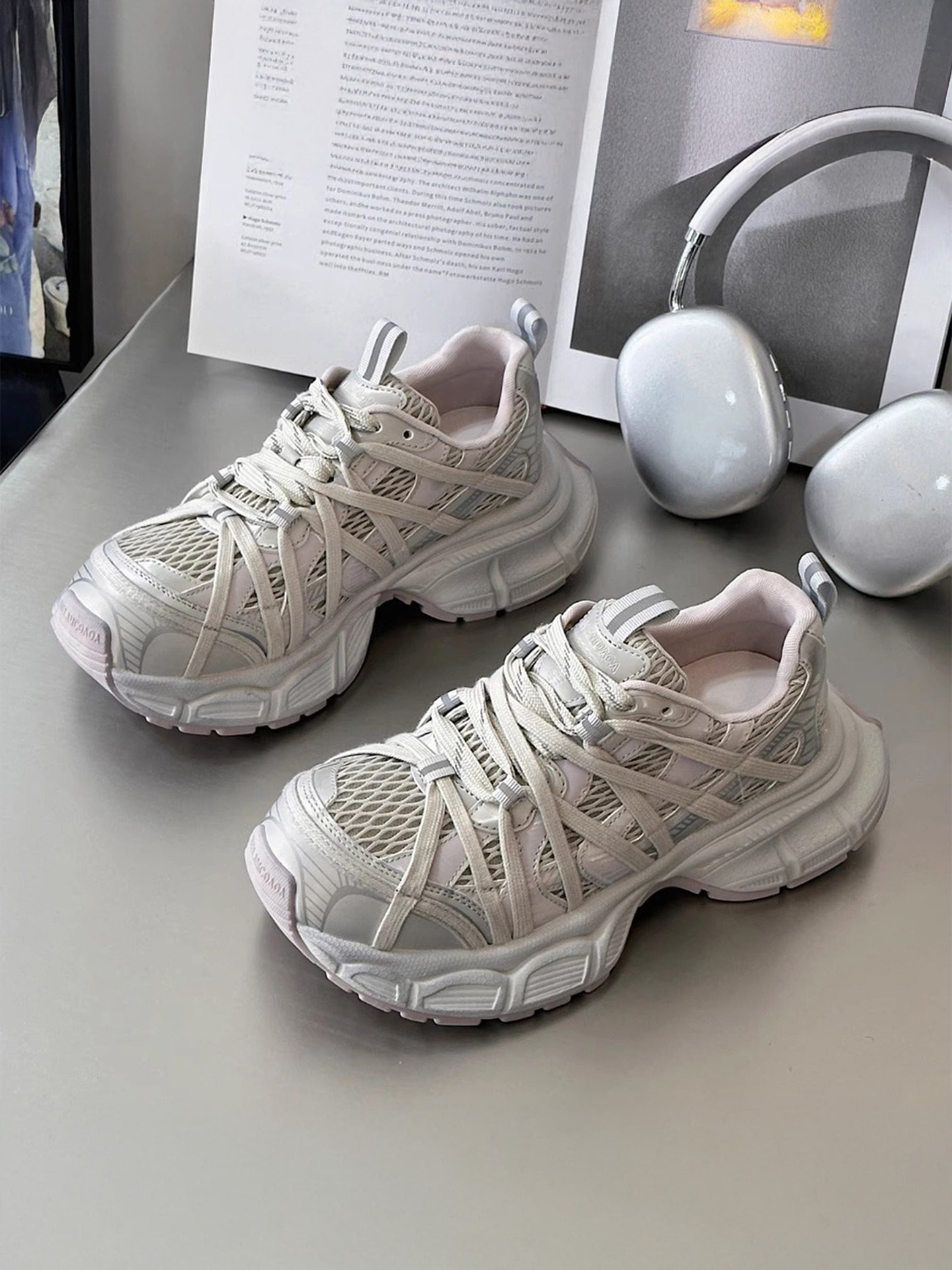 Hong Kong Vintage-Style Thick-Soled Dad Shoes for Women, 2026 Spring New Model, Super Popular Lace-Up Mesh Breathable Casual Sneakers