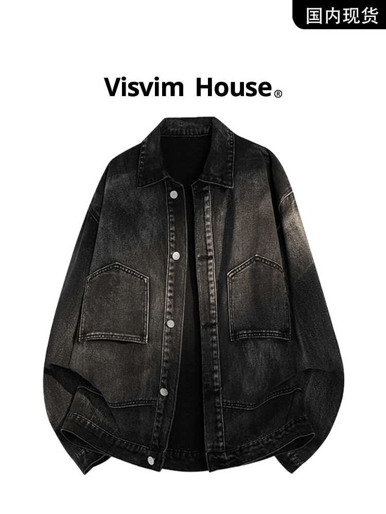 【Brand Clearance】Visvim Wings Autumn Workwear Turn-Down Collar Washed Denim Jacket for Men Trendy