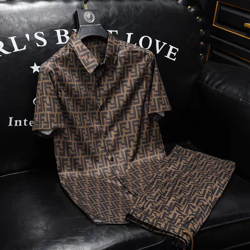 Summer New Short-Sleeved Suit for Men, Sports and Leisure Two-Piece Set, Trendy Printed Shirt, European Style Shorts