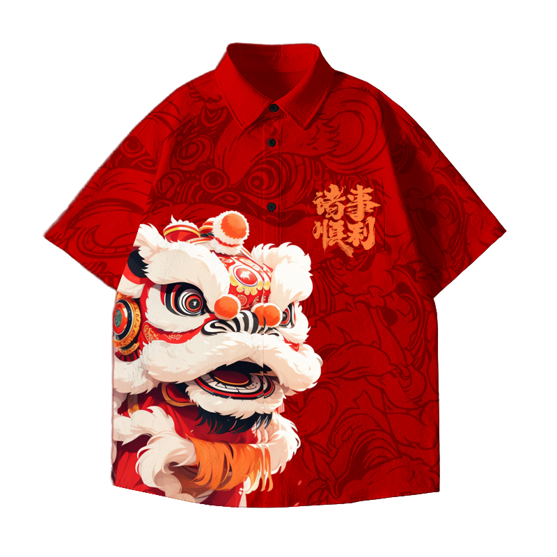 Chinese Fad Lion Wake Plus size Loose Short Sleeve shirt Men's and Women's Zodiac Year Red Snake New Year Festive shirt Outwear